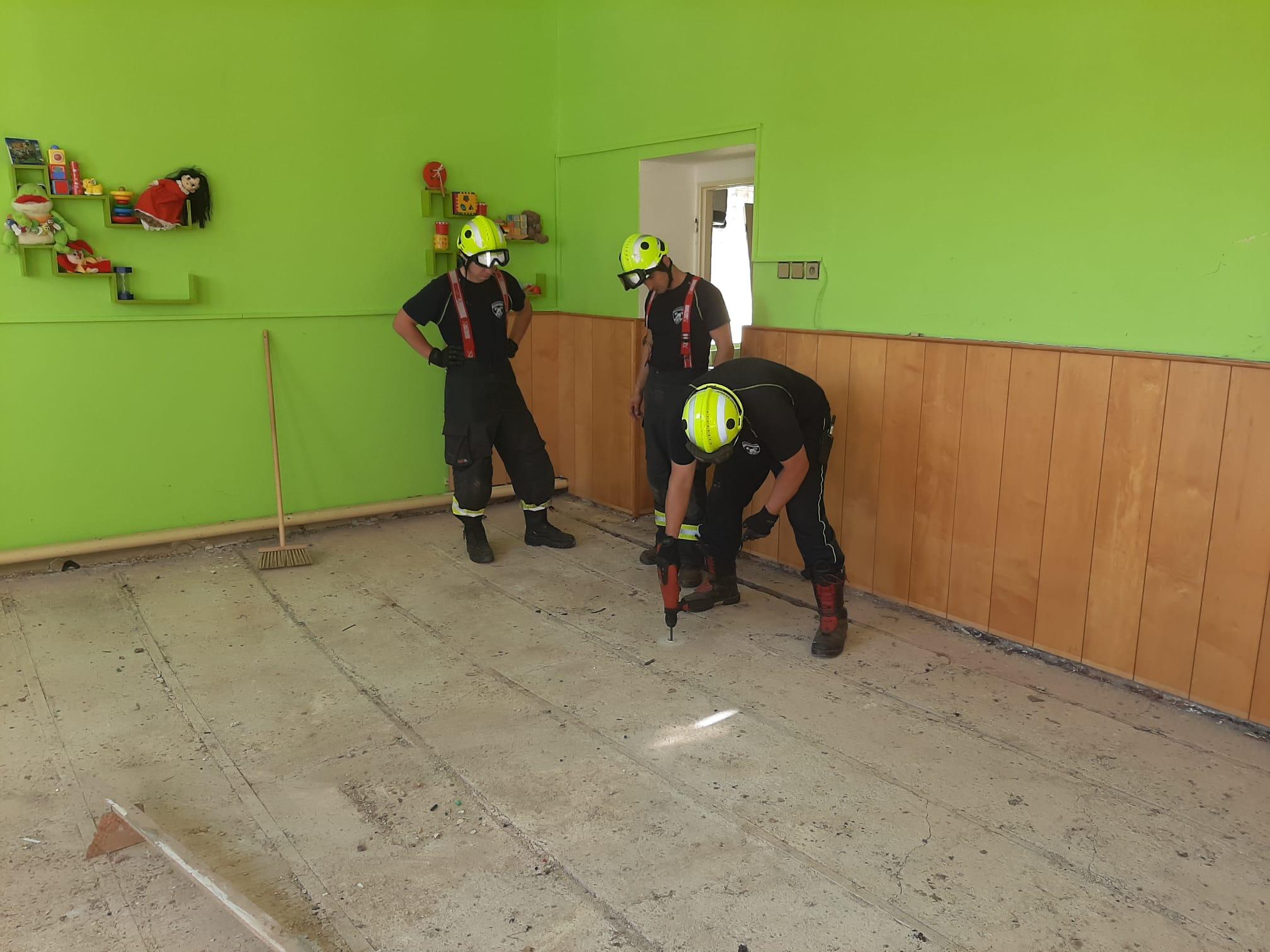 Prvním konkrétním případem je školka v obci Široký Brod. Díky velkému úsilí se ji podařilo částečně znovu otevřít a děti jsou dočasně umístěny v patře budovy. Elektrické rozvody byly obnoveny a vytápění je zajištěno přímotopy. Nicméně přízemí zůstává nefunkční a pro plné obnovení provozu je potřeba kompletně opravit podlahu a další části budovy. Jen výměna podlahy bude stát více než 500 000 Kč.