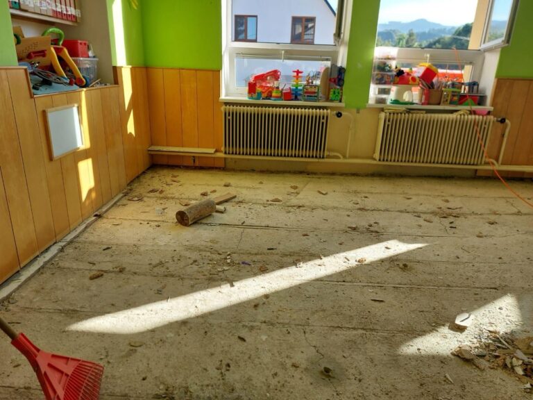 Co ale zůstává nevyřešené, je základní škola. Tělocvična, kuchyň, jídelna, sklep a spodní patro stále čekají na opravy.