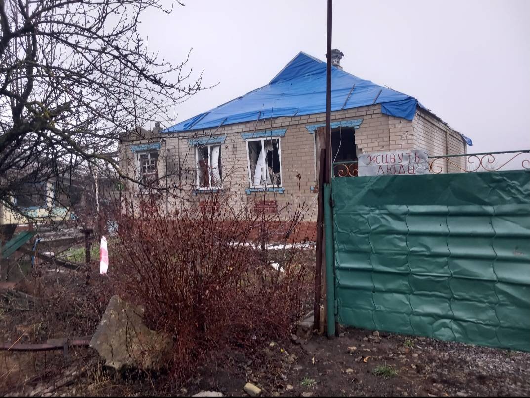 Dům paní Natálie je z části poničený. Tlaková vlna odnesla kus střechy a roztříštila okna. „Domy v rokli u řeky se po ostřelování podařilo zachovat. Vyčistili tam cestu a my tam teď chodíme rybařit. Ano, rybaření bývala zábava. Teď je to způsob přežití.“