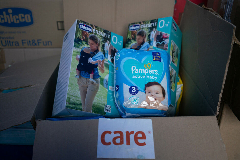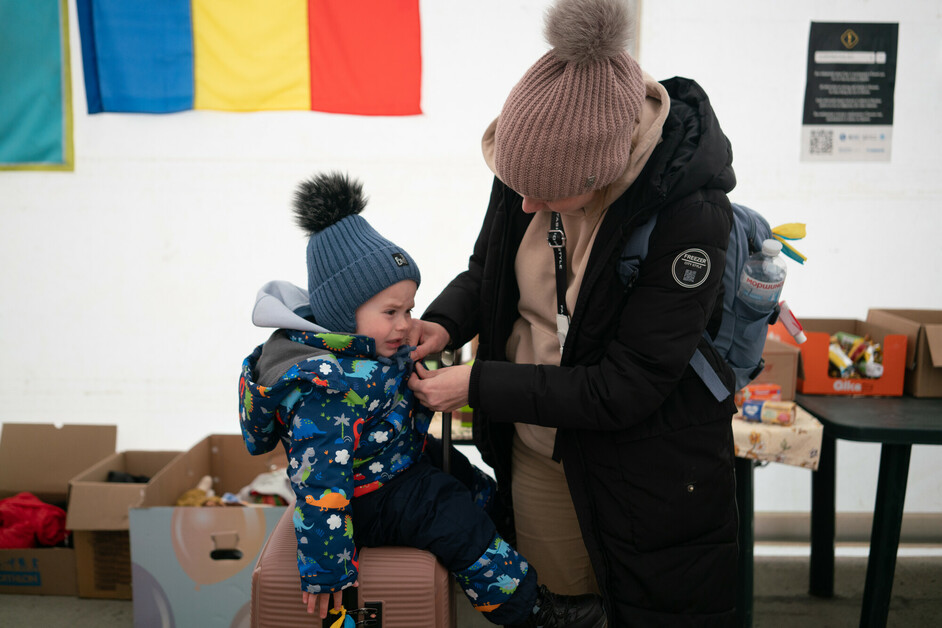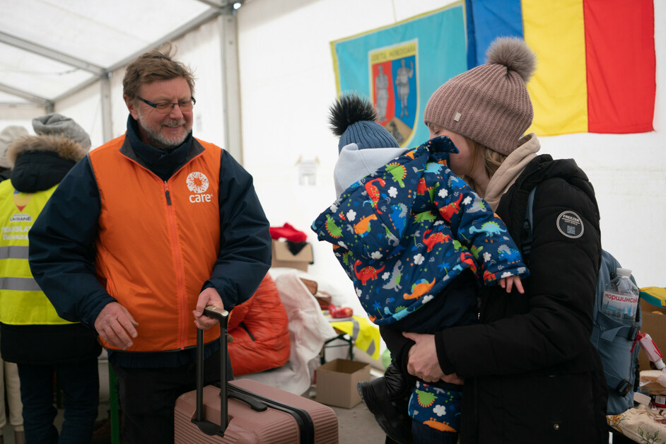 Na ukrajinsko-rumunskou hranici přicházejí denně tisíce maminek s dětmi. CARE jim zde poskytuje vše potřebné, přes přikrývky a teplé nápoje až po hygienické potřeby a plenky.
